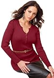 Jessica London Women"s Plus Size Henley Sweater In Ribbed Cotton Dark Red,22/24