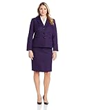 Le Suit Women"s Plus-Size 3 Button Notch Collar Pindot Jacket with Skirt Suit Set, Violet/Black, 18
