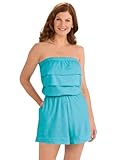 This super soft ruffled terry romper is perfect to wear lounging by the pool or around the house. Elastic top and waist allow a perfect fit. Polyester. Imported. Easy care; machine wash and dry. Approx. inseam 2". Available in sizes: SM(6-8), MED(10-12), LG(14-16), 1X(16W-18W), 2X(20W-22W), 3X(24W-26W) or 4X(28W-30W)