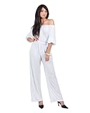 Koh Koh Women"s Flattering One Shoulder 3/4 Sleeve Versatile Jumpsuit Playsuit Romper - XX-Large - Off White