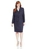 Le Suit Women"s Plus-Size 3 Button Wide Notch Collar Pindot Jacket and Skirt Suit Set, Navy/White, 18