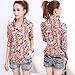 Thinkbay® Fashion Girl Women"s Floral Pattern Roll up Shirt Point Collar Tops Blouse Clothing New (L/US4/UK8/EU34, Pink)
