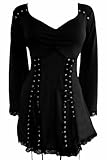 Forged in a crucible of darkness and mystery, our Gothic-inspired Electra top now emerges to bring forth your vampy, warrior princess style! This striking head-turner features a sexy, sweetheart neckline, a figure-flattering empire waist cut, and lace and grommet accents. The two grommeted lace-ups on the skirt offer versatility in fit and styling: lace it all the way down for a more fitted l